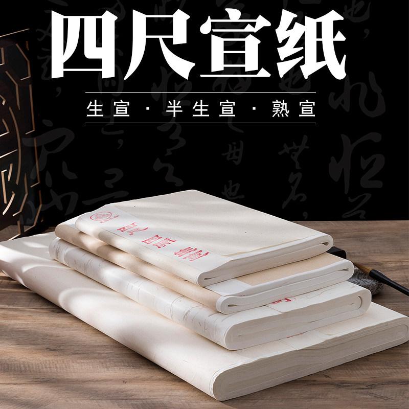 宣纸四尺整张六尺对开书法国画毛笔字熟宣工笔画专用小楷作品纸白色仿古纸生宣半生半熟宣大尺寸半生熟抄经