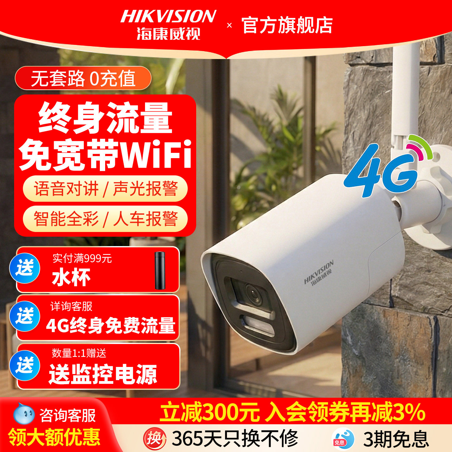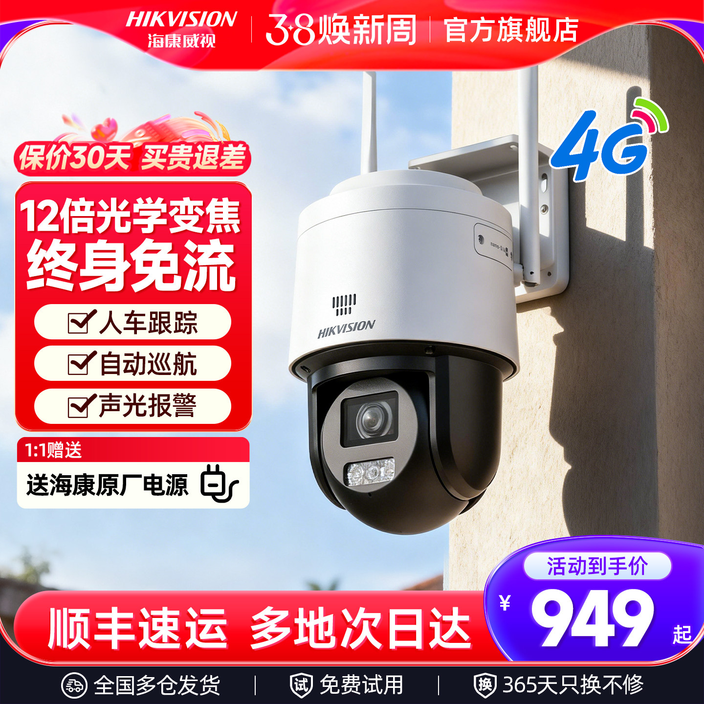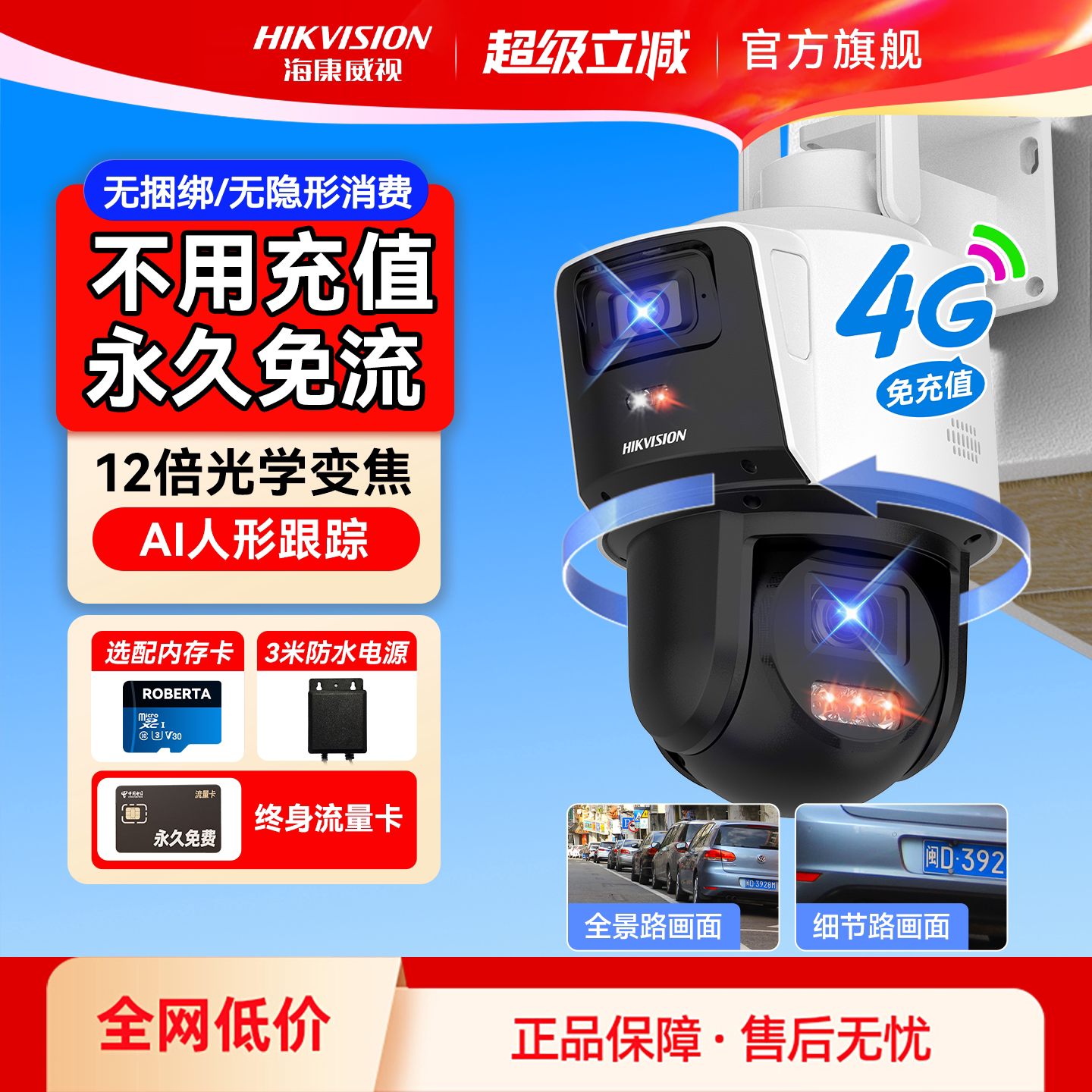 海康威视官方旗舰4g摄影头免流量无需网络摄像头监控手机室外门口