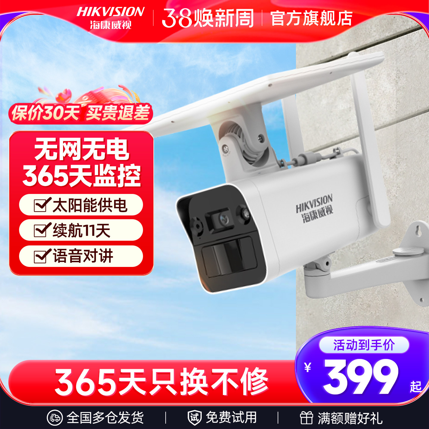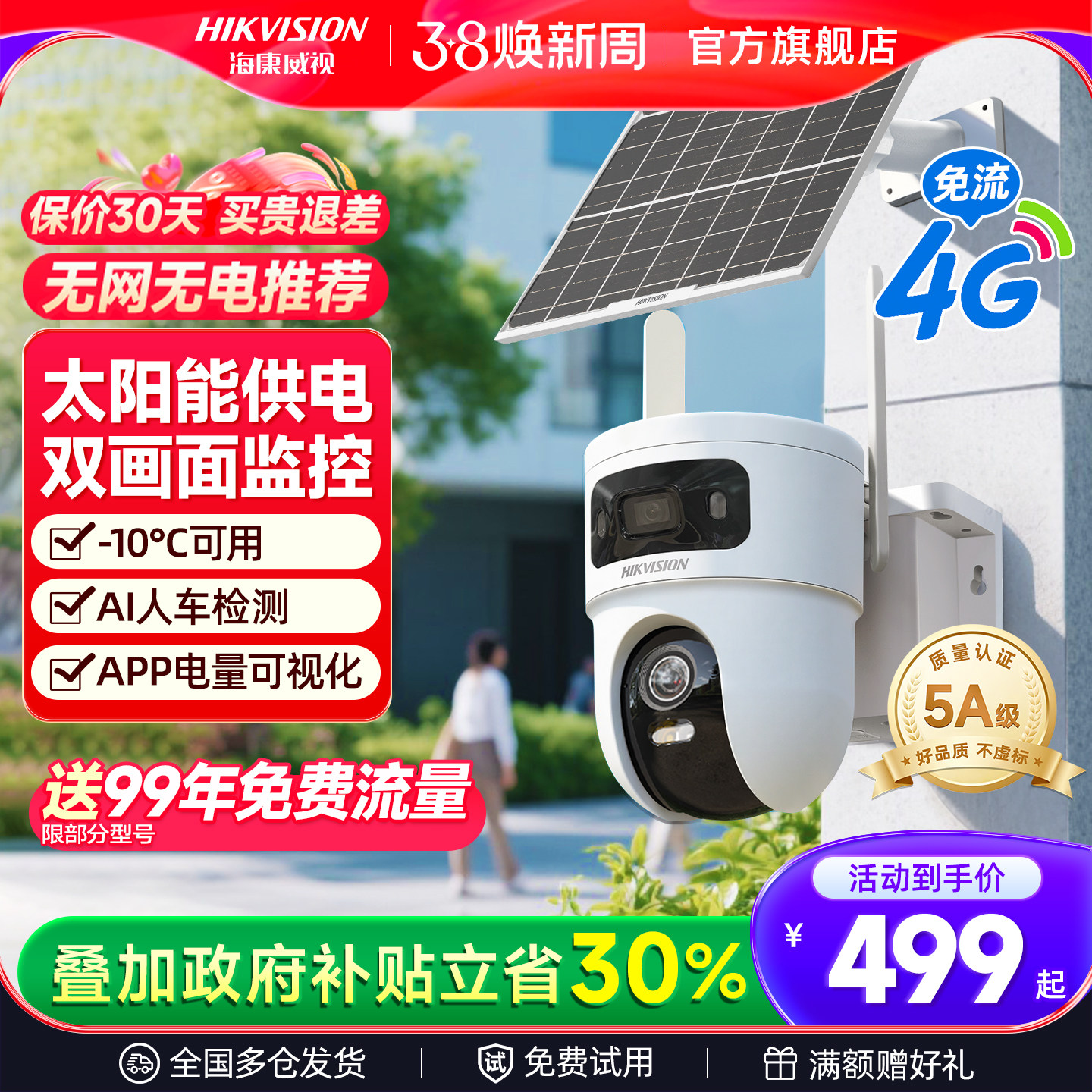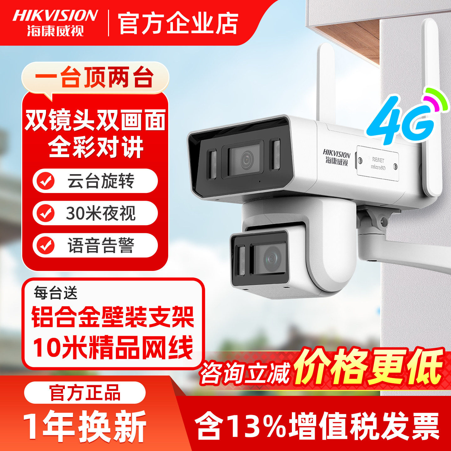 海康威视官方旗舰4g摄影头免流量无需网络摄像头监控手机室外门口
