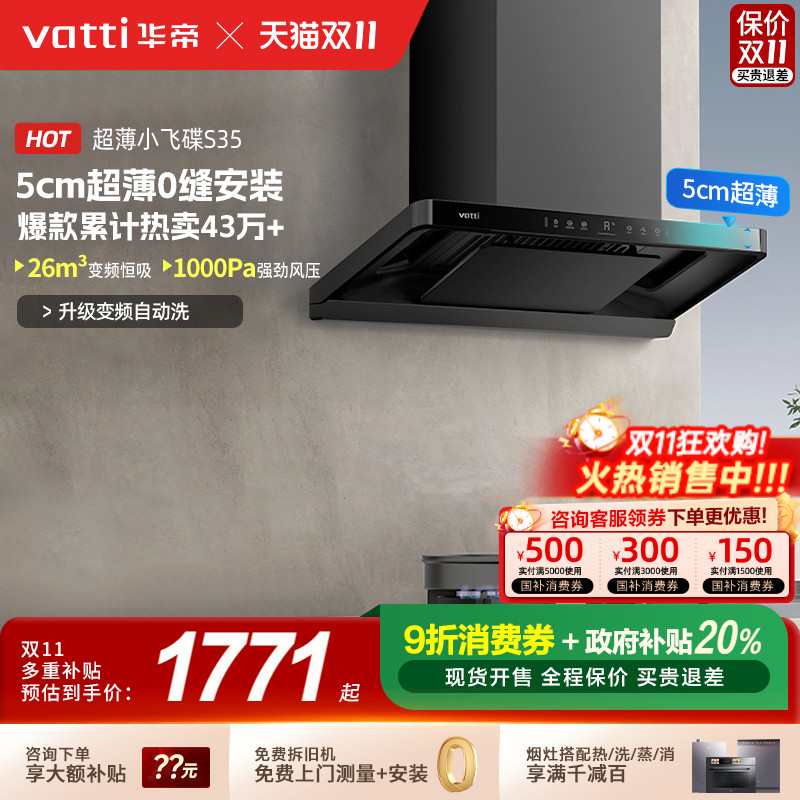 华帝小飞碟S35超薄吸油烟机家用厨房大吸力抽油烟机以旧换新补贴