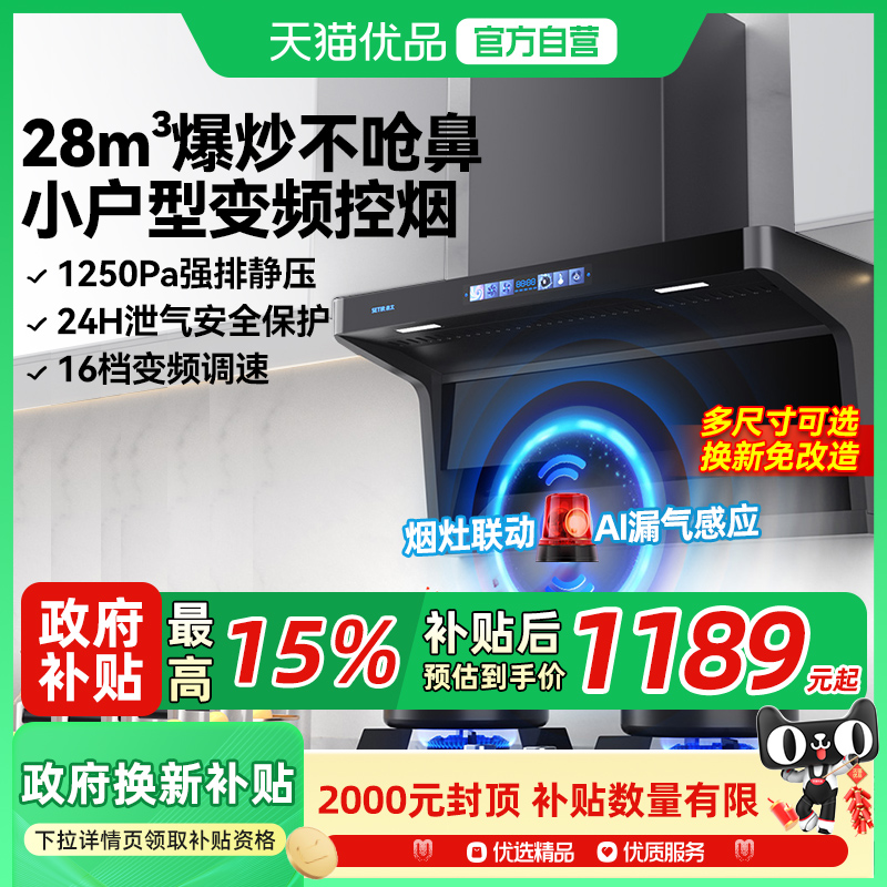 【政府补贴20%】志高油烟机厨房家用大吸力顶侧双吸变频抽油烟机