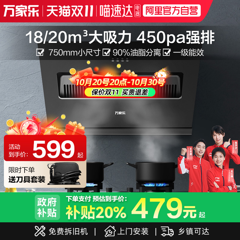 [政府补贴]万和小双翼顶侧双吸油烟机厨房大吸力抽油烟机V6L系列
