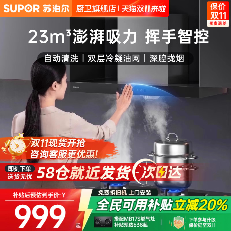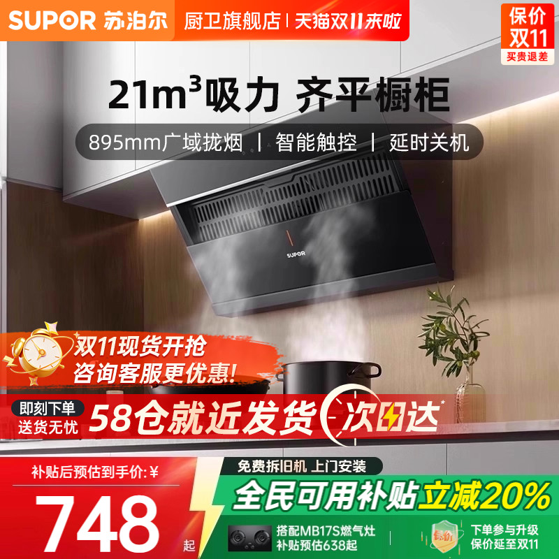 [换新补贴]苏泊尔MJ12烟机抽油烟机官方旗舰店家用厨房侧吸抽烟机