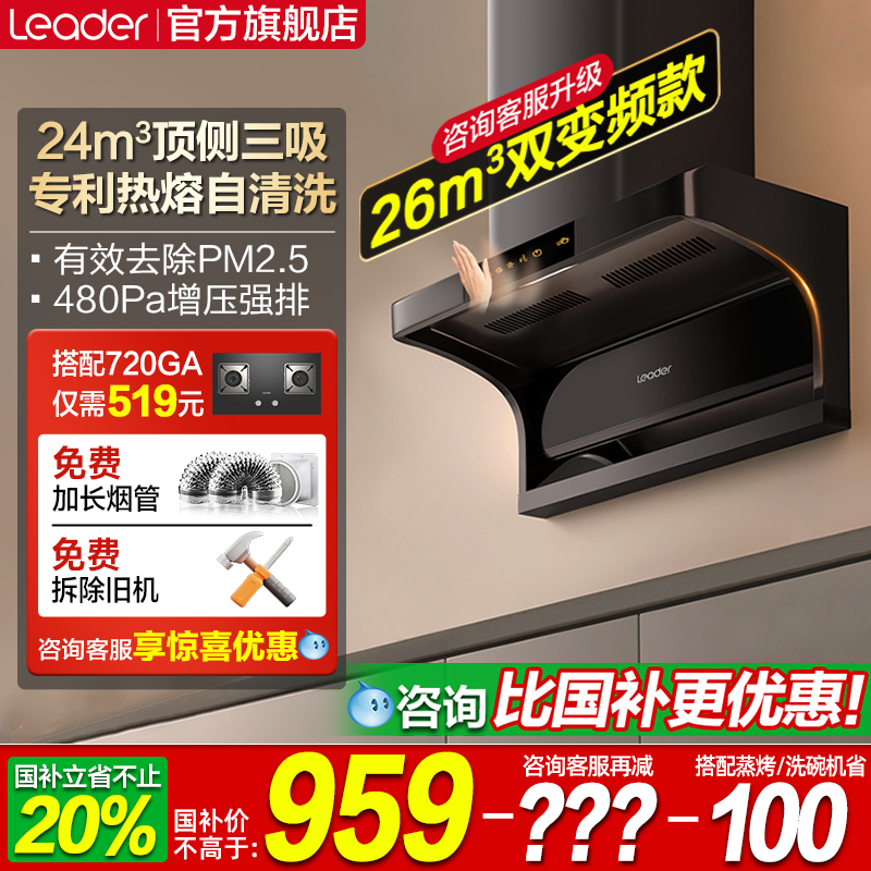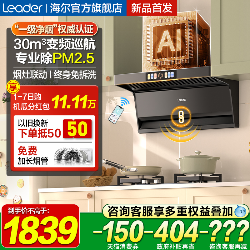 海尔leader顶侧双吸抽油烟机家用厨房大吸力吸油烟机抽烟机吸油机
