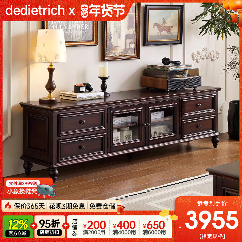 华丹妮美式复古全实木电视柜客厅家用小户型多抽储物收纳落地矮柜