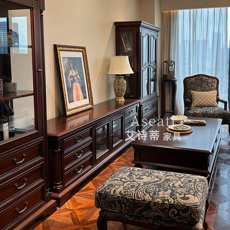 时余马德里电视柜法式中古风全实木2米2茶几组合佛山家具美式复古