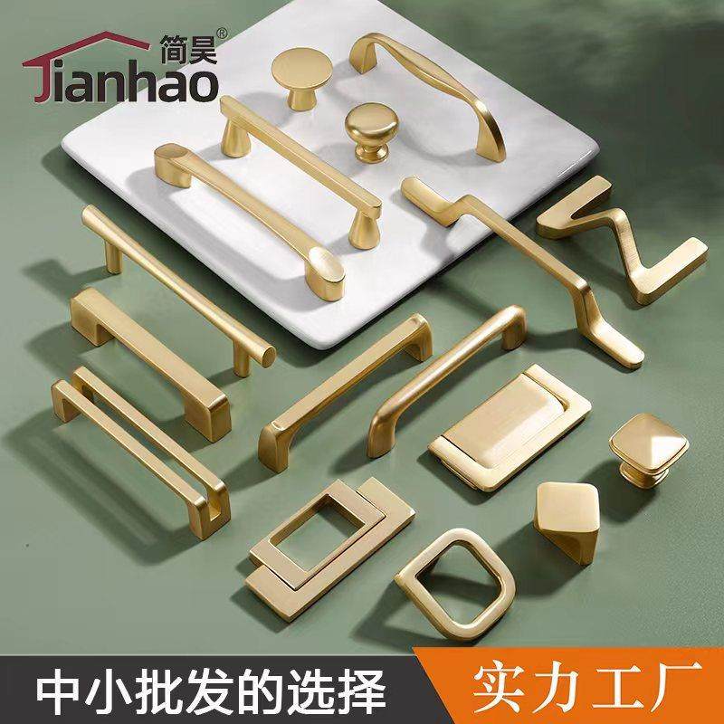黄铜衣柜门拉手中式鞋柜中古风现代简约金色法式橱柜抽屉厨房把手