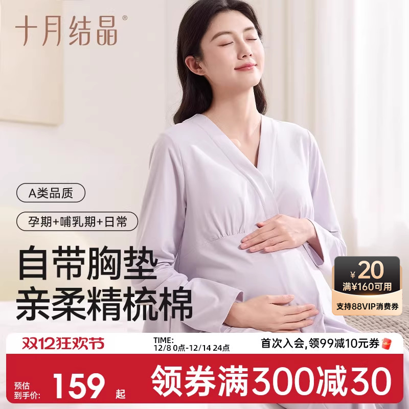 十月结晶月子服孕产妇胸垫哺乳睡衣产后纯棉怀孕期家居服套装秋季