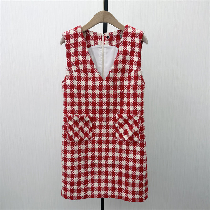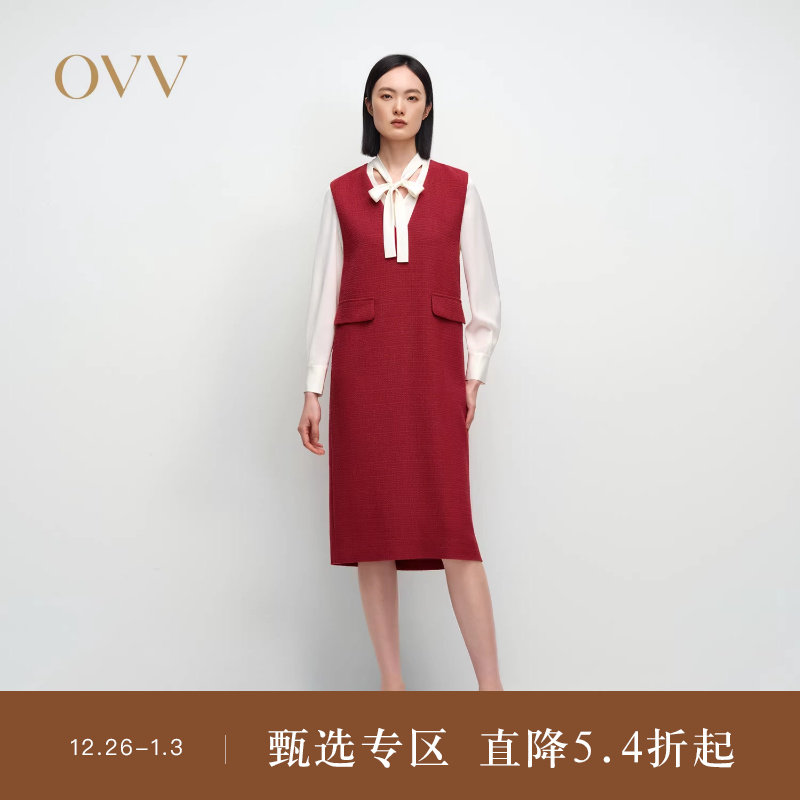 【新年红系列】OVV2025春夏新款女装粗花呢V领背心连衣裙
