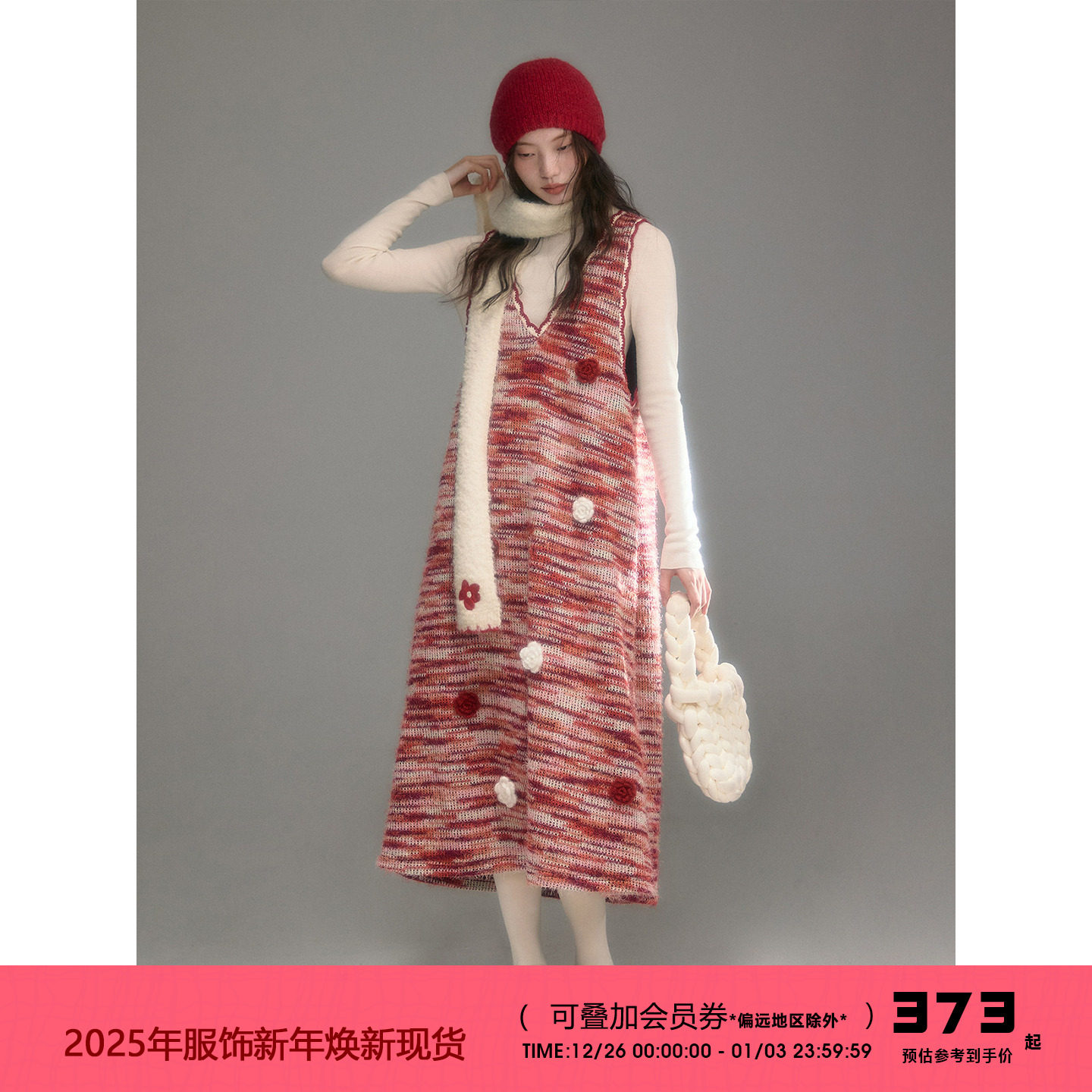 ToyzY趣味编织项链羊毛v领背心连衣裙长款2025冬新品ZC35505020