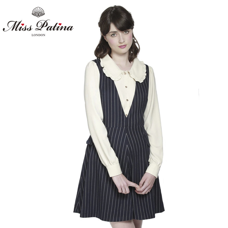 MP英伦复古学院风条纹V领背心连衣裙收腰显瘦气质长裙秋季新款