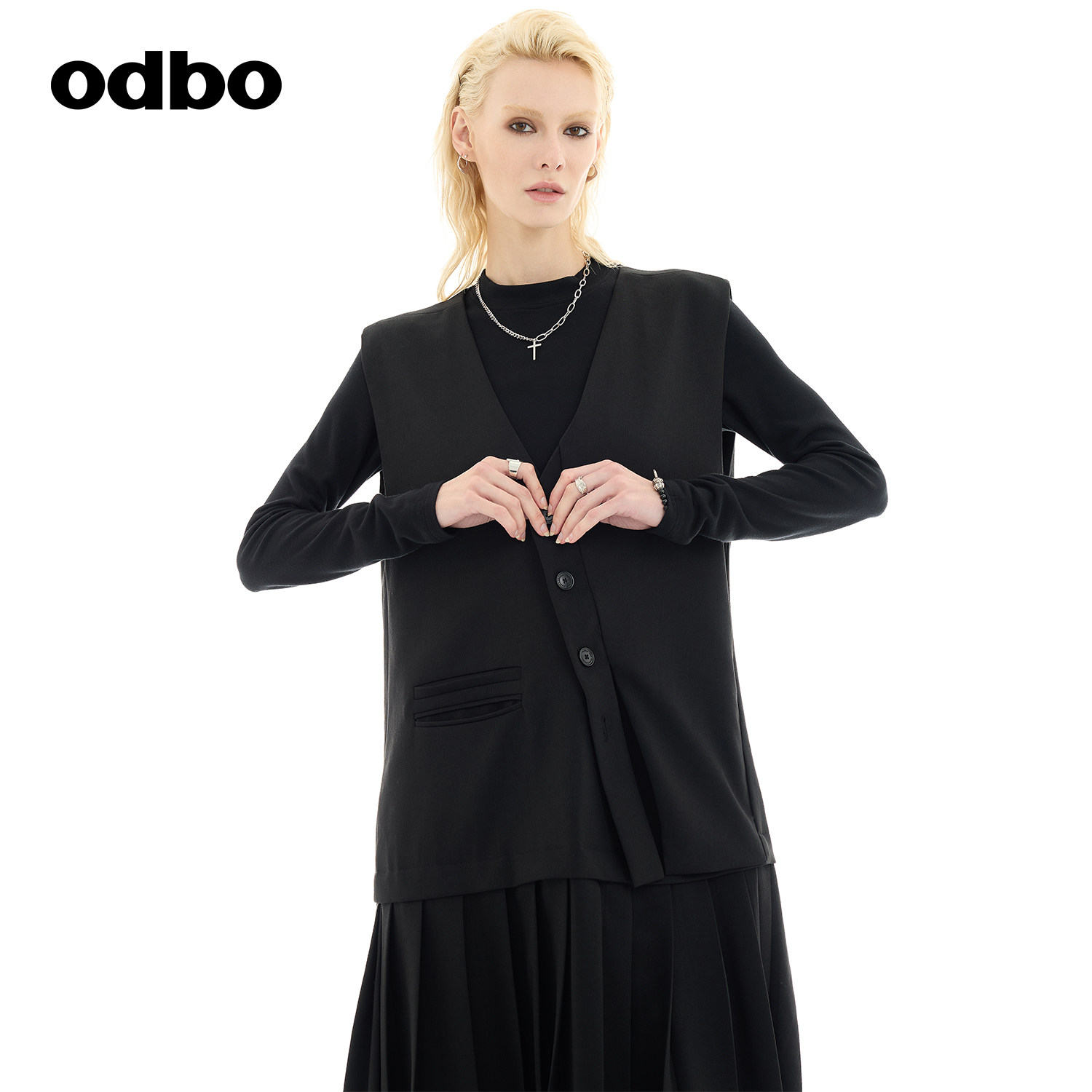 odbo/欧迪比欧无袖坎肩V领背心连衣裙女秋冬修身休闲马甲裙假两件
