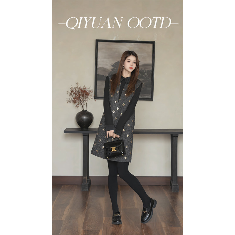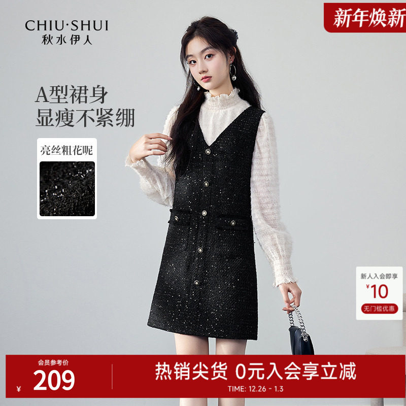 秋水伊人小香风V领背心连衣裙2025年冬季新款女宽松直筒精致裙子