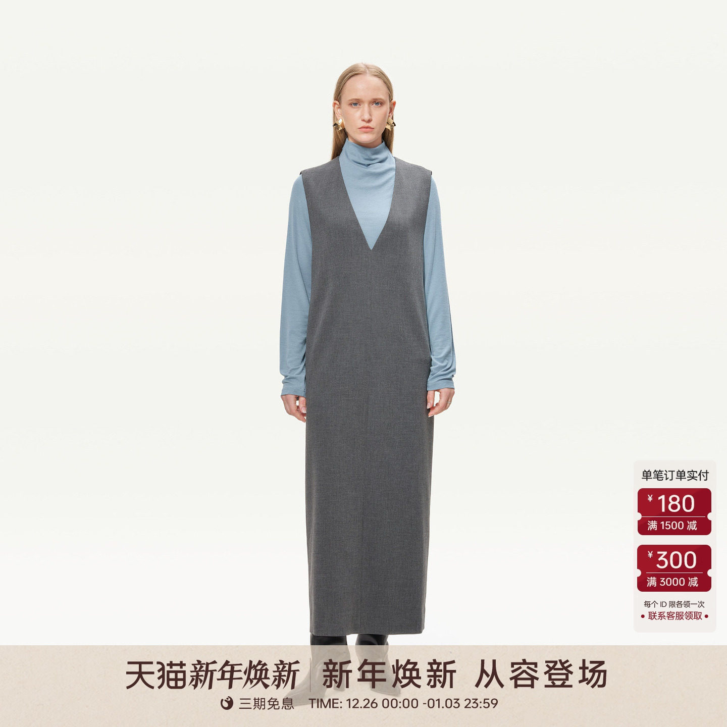 Maven Lin 极简羊毛100%双面呢连衣裙女秋冬深V领毛呢背心裙A字裙