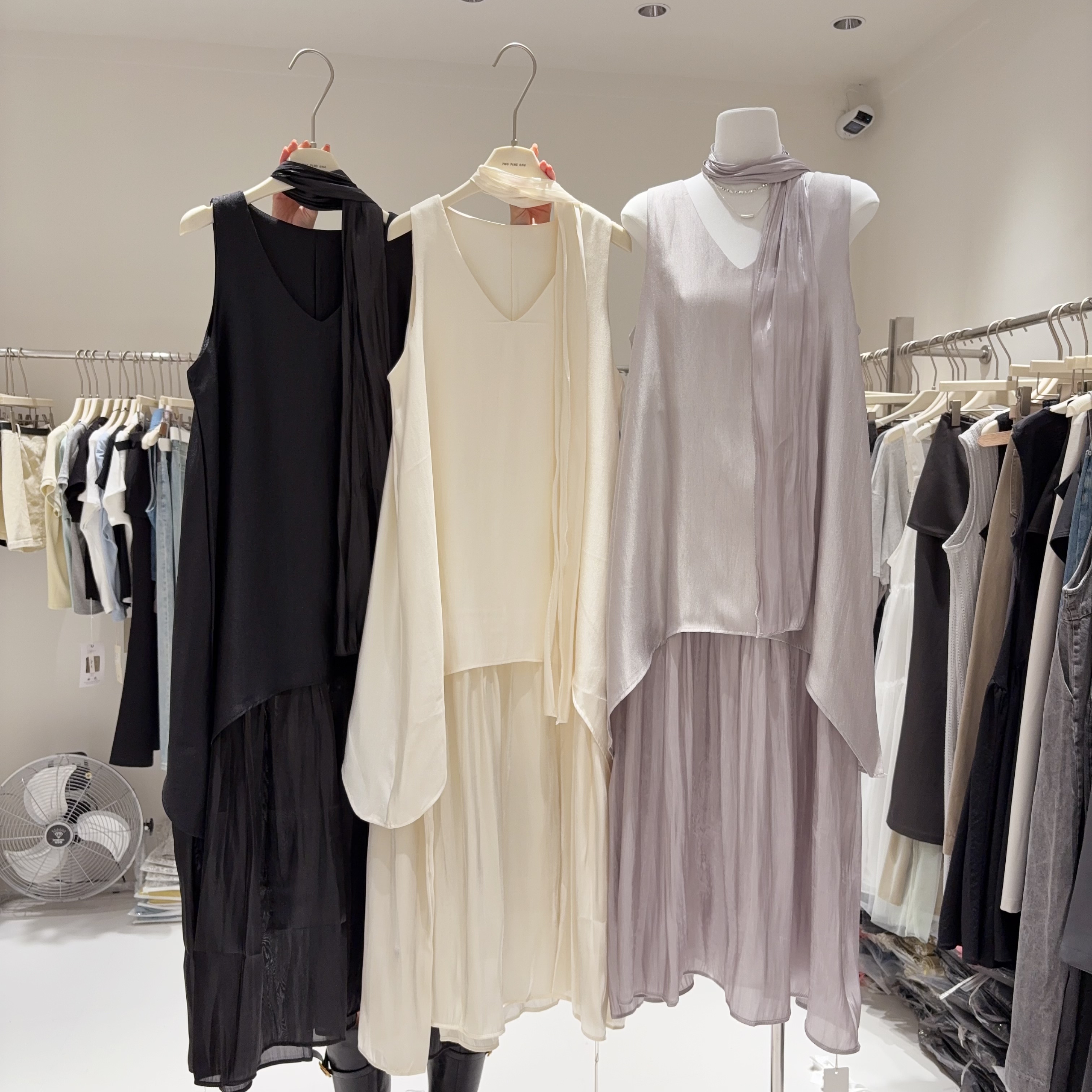 代工厂!韩国NUESE2026春款韩系温柔V领吊带连衣裙修身显瘦背心裙
