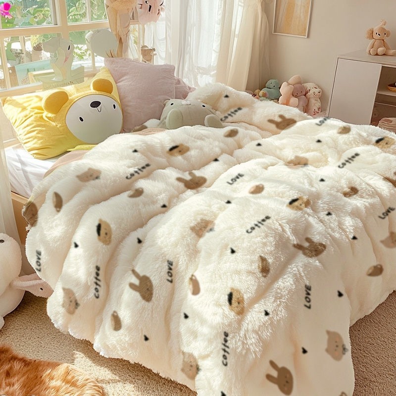 新款三丽鸥卡通水洗棉豆豆绒保暖被春秋被子冬被加厚被芯软糯蓬松