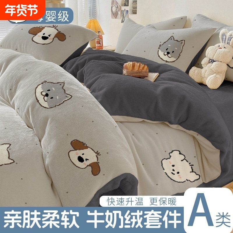 牛奶绒被子被套一整套可拆洗冬被双人10斤加厚被芯珊瑚学生棉被褥