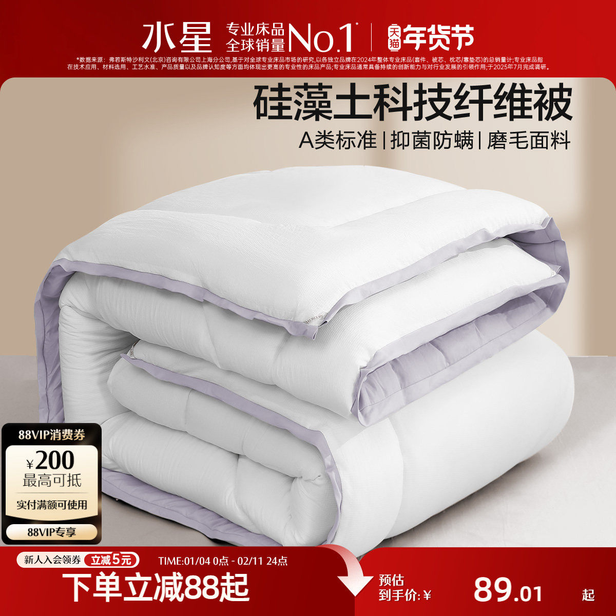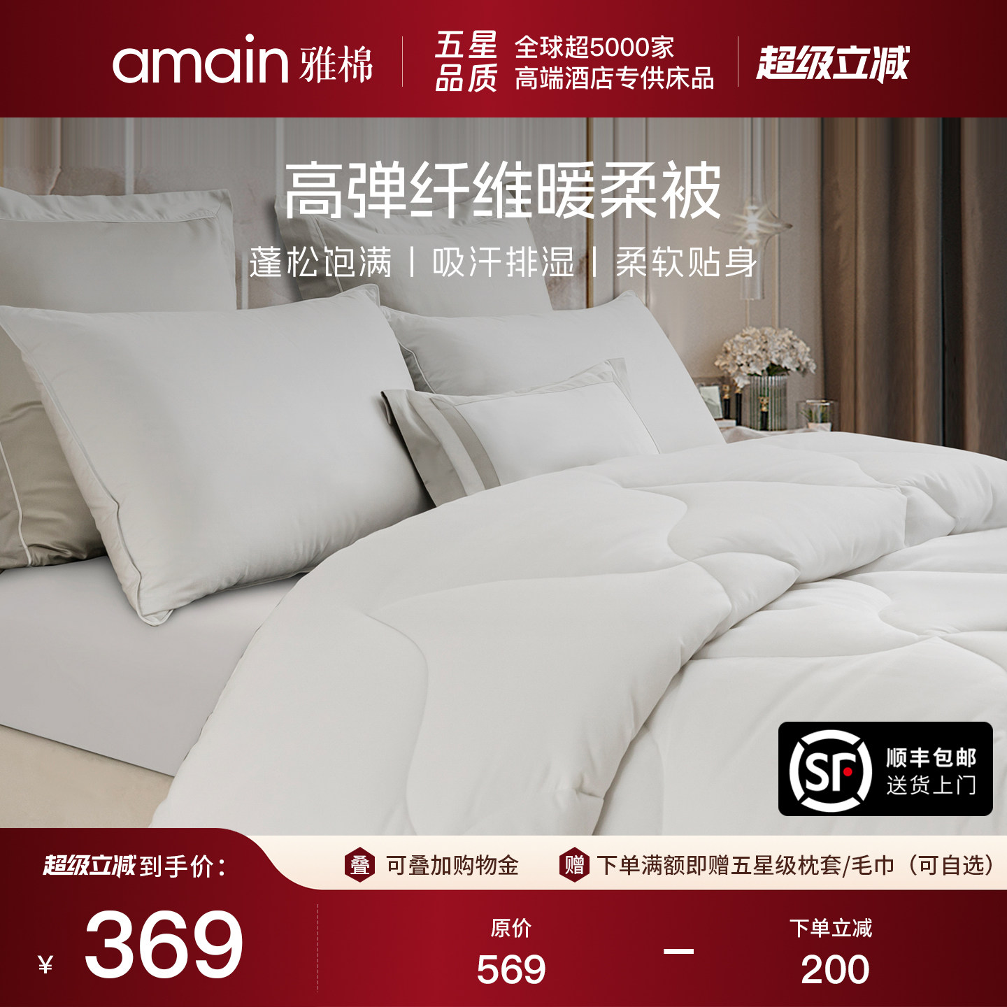 雅棉amain全棉棉被冬被加厚被芯保暖抗菌吸汗透气高端酒店同款