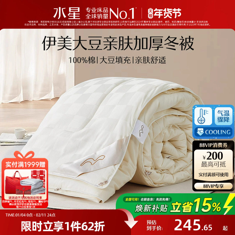 水星家纺春秋被子全棉大豆纤维被保暖加厚被芯二合一被褥四季通用