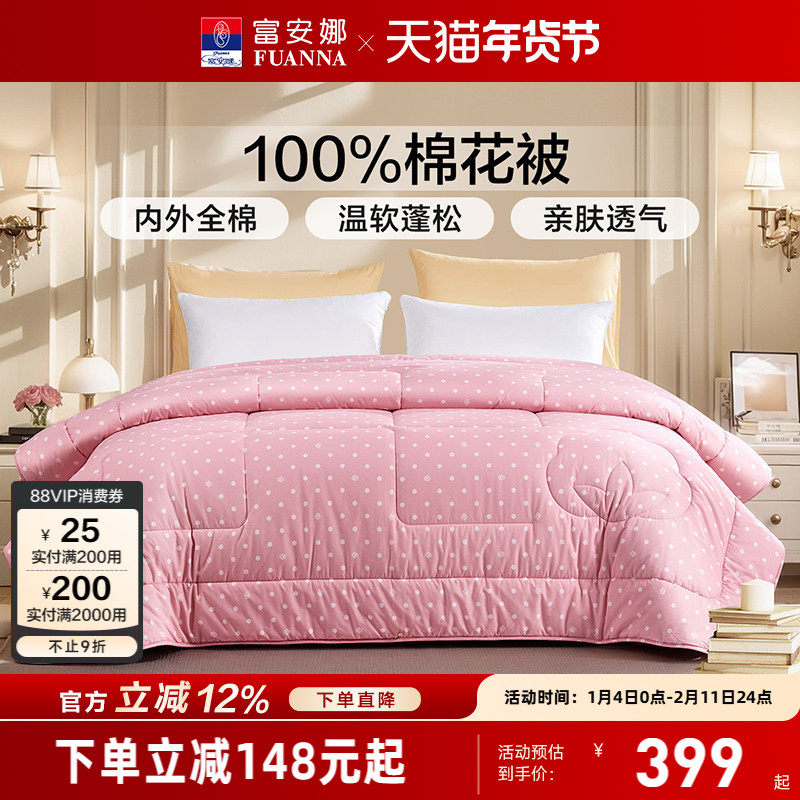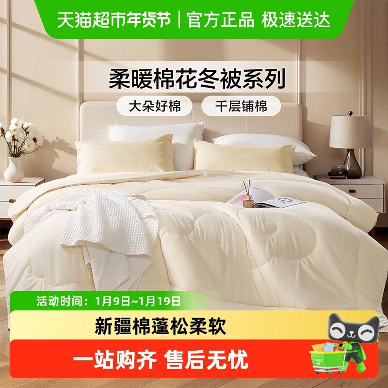 富安娜100%纯棉棉花被全棉被纯棉被子冬季加厚被芯四季被通用冬被
