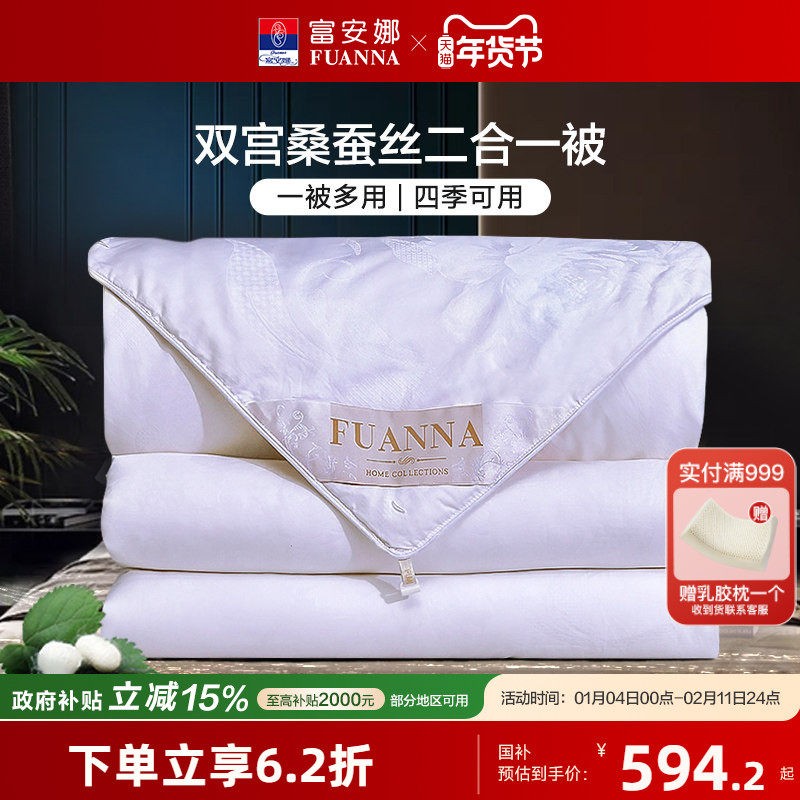 富安娜100双宫茧蚕丝冬厚被 纯棉保暖加厚被芯抗菌春秋被四季通用