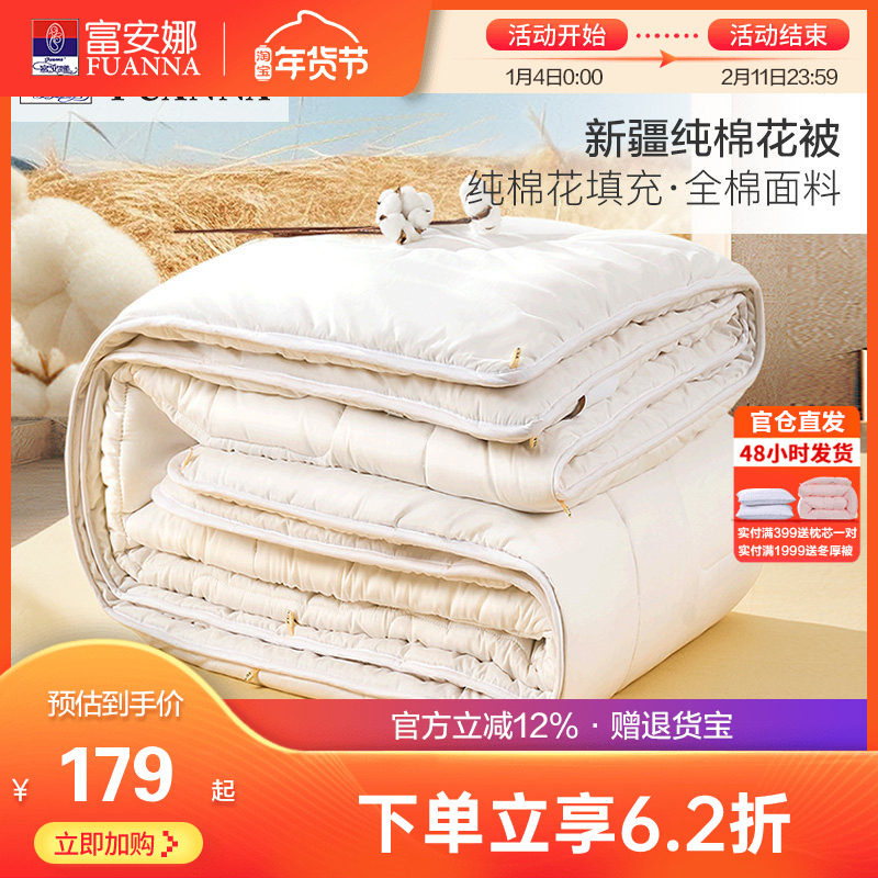 富安娜家纺棉花被新疆棉被春秋被子加厚被芯四季通用保暖棉絮冬被