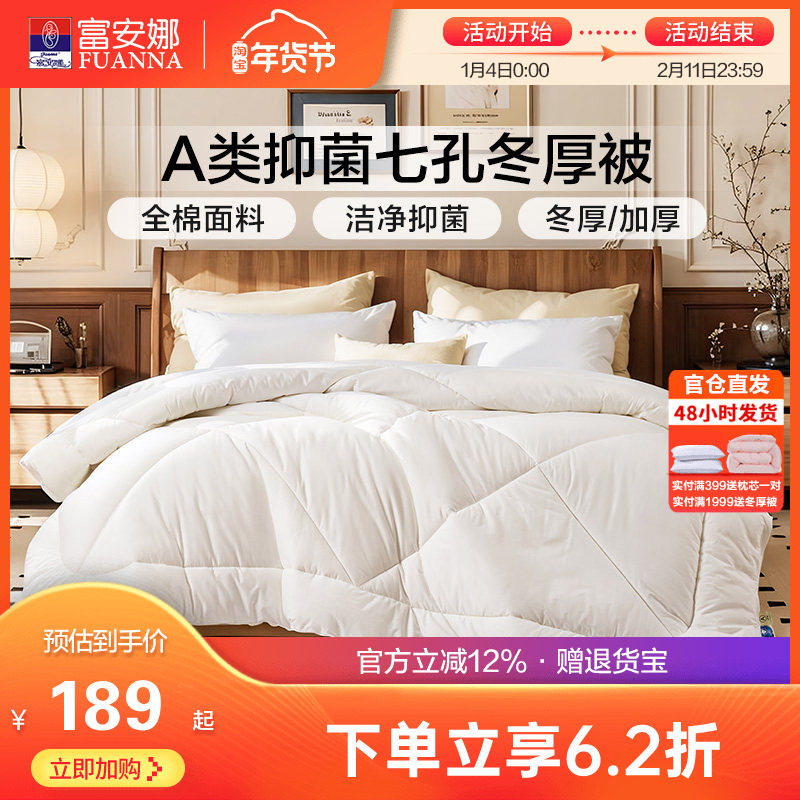 富安娜被子纯棉四季被学生宿舍七孔整被A类双人被褥秋冬加厚被芯
