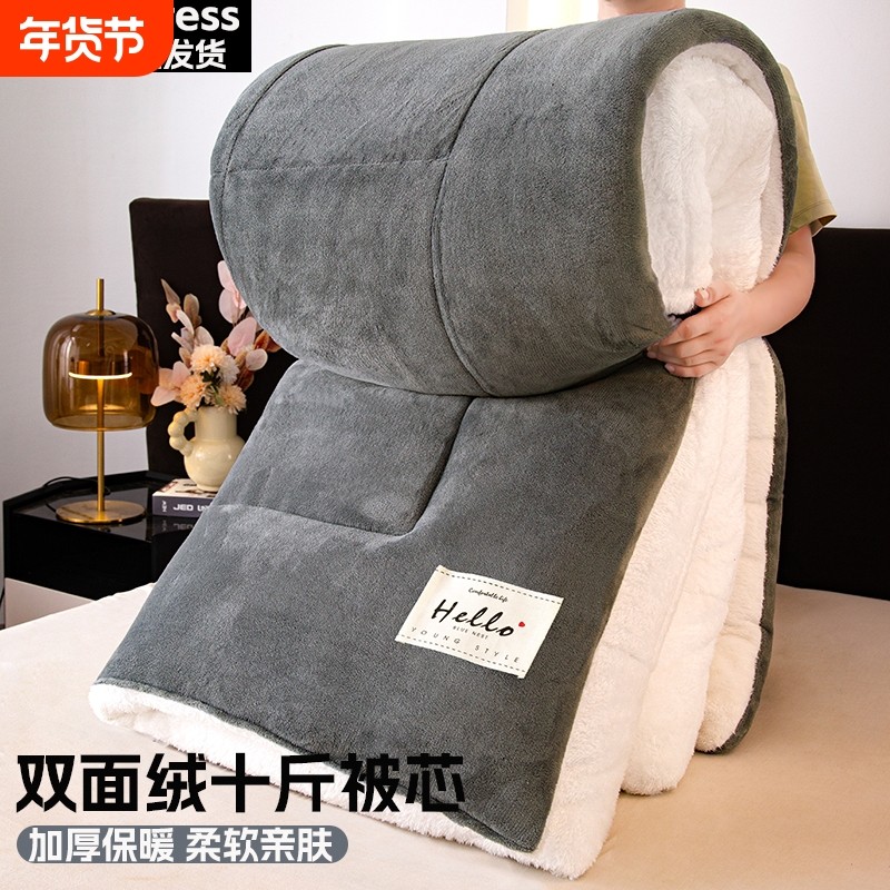 加绒冬季被子冬被加厚被芯保暖宿舍绒被羊羔绒棉被抗菌纤维牛奶绒
