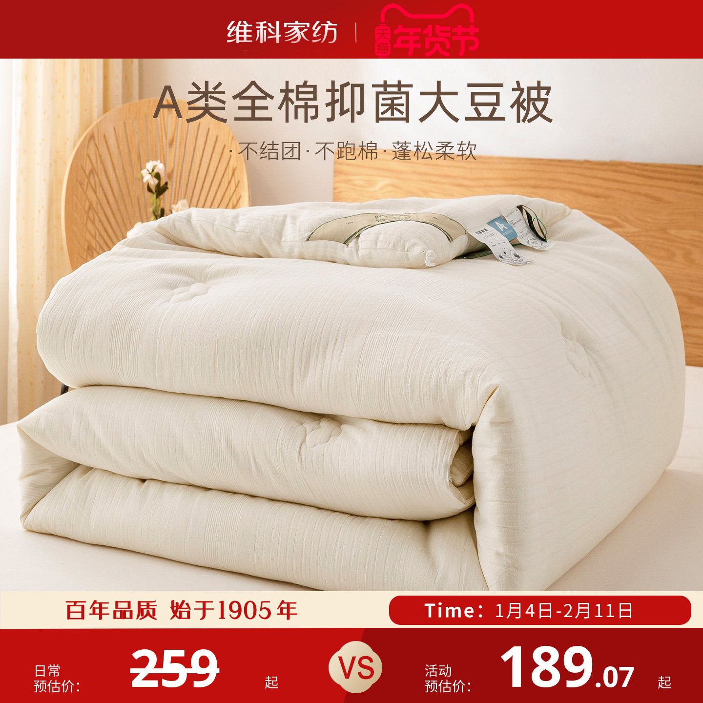 维科家纺大豆冬被全棉A类抑菌纤维被提花被子春秋子母被加厚被芯