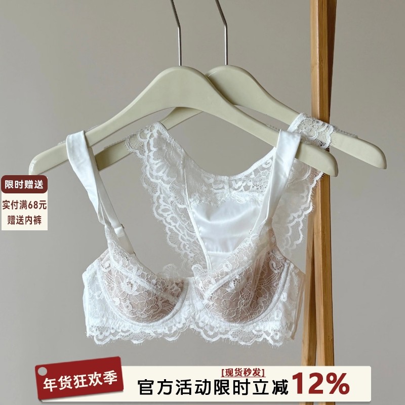 法式超薄款文胸无钢圈大胸显小内衣女蕾丝性感纯欲bralette三角杯