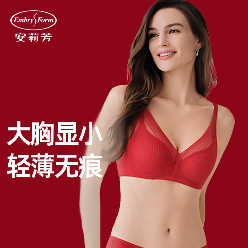安莉芳属马本命年大红色蜂巢杯超薄款文胸罩女士大胸显小聚拢内衣