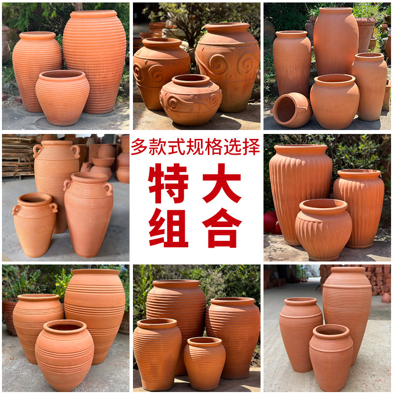 特大包邮粗陶红泥陶瓷罐大号清仓红陶花盆组合户外庭院陶罐土陶盆