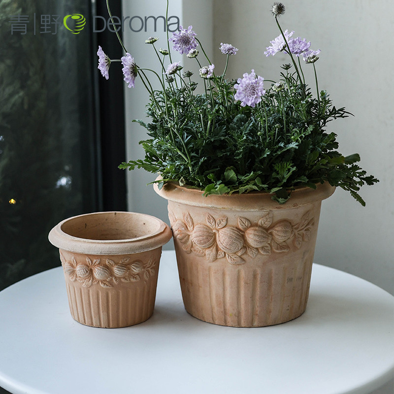 青野 DEROMA 意大利进口红陶土盆三角梅陶瓷花盆透气手工粗陶北欧