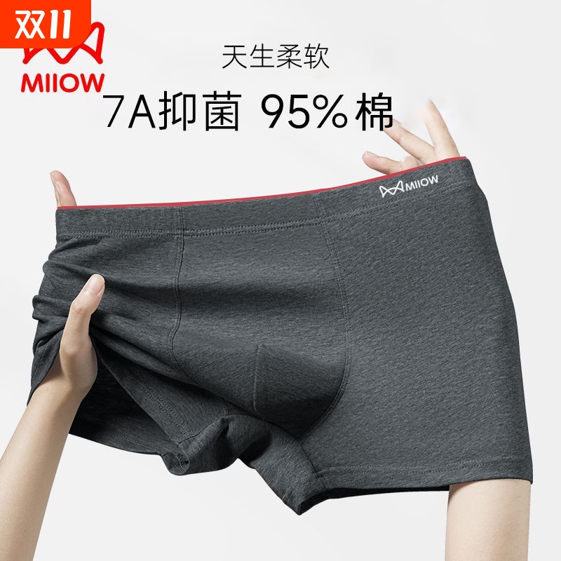 猫人抗菌裆男士内裤男冰丝无痕四角裤运动纯棉裆平角大码裤青少年
