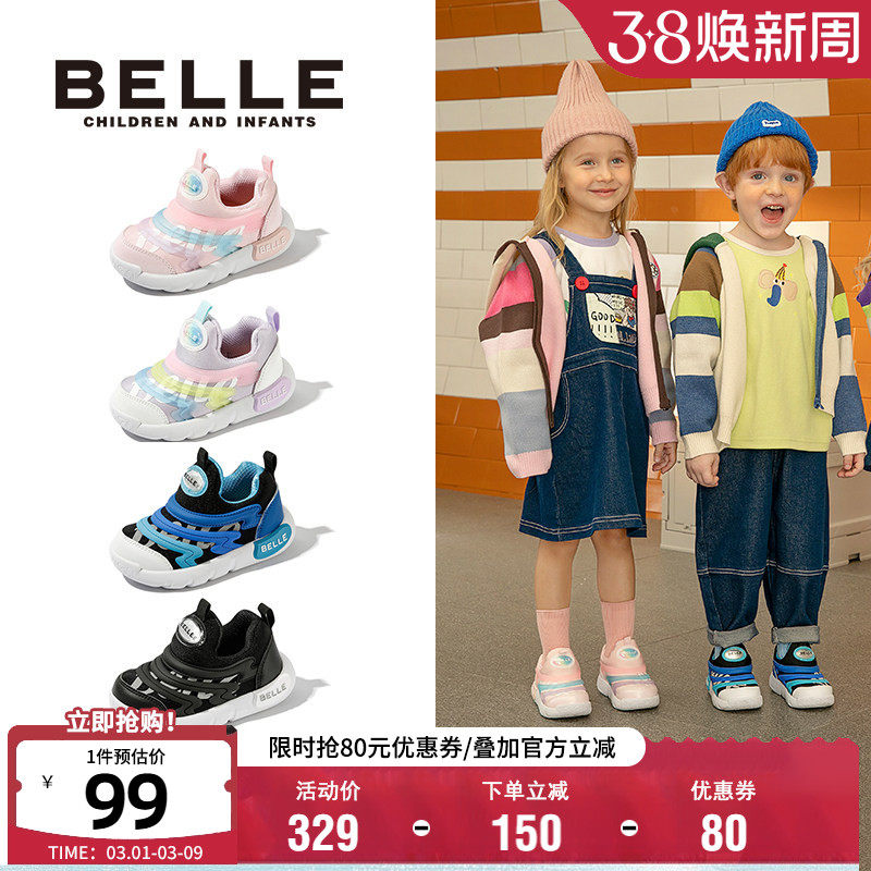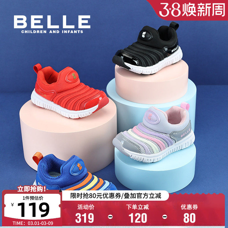 百丽童鞋26春季新款儿童运动鞋毛毛虫男女童软底轻便休闲鞋一脚蹬