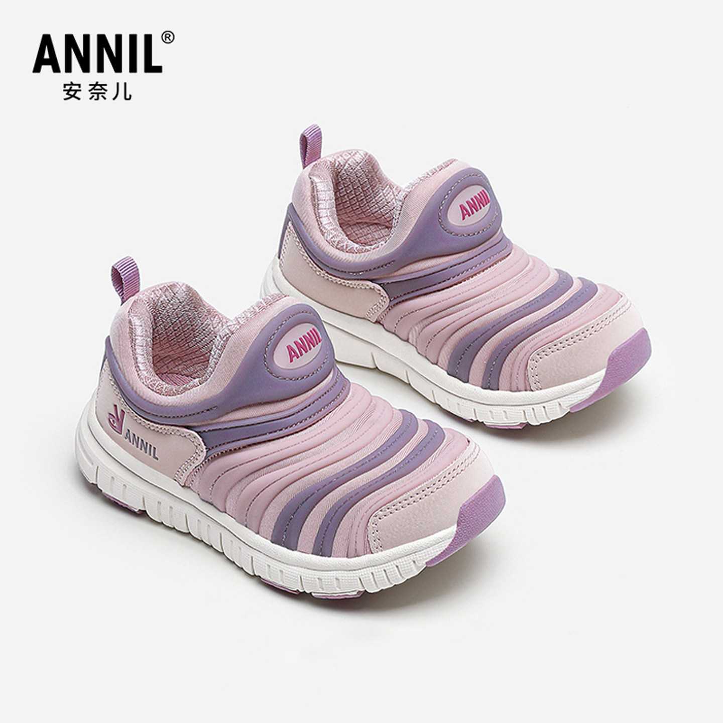 安奈儿女童鞋一脚蹬春秋季新款女孩毛毛虫鞋子儿童软底轻便运动鞋