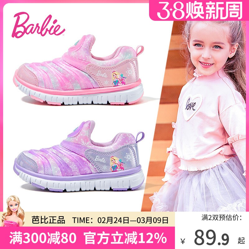 芭比童鞋女童鞋子2026新款春季软底一脚蹬公主毛毛虫鞋儿童运动鞋