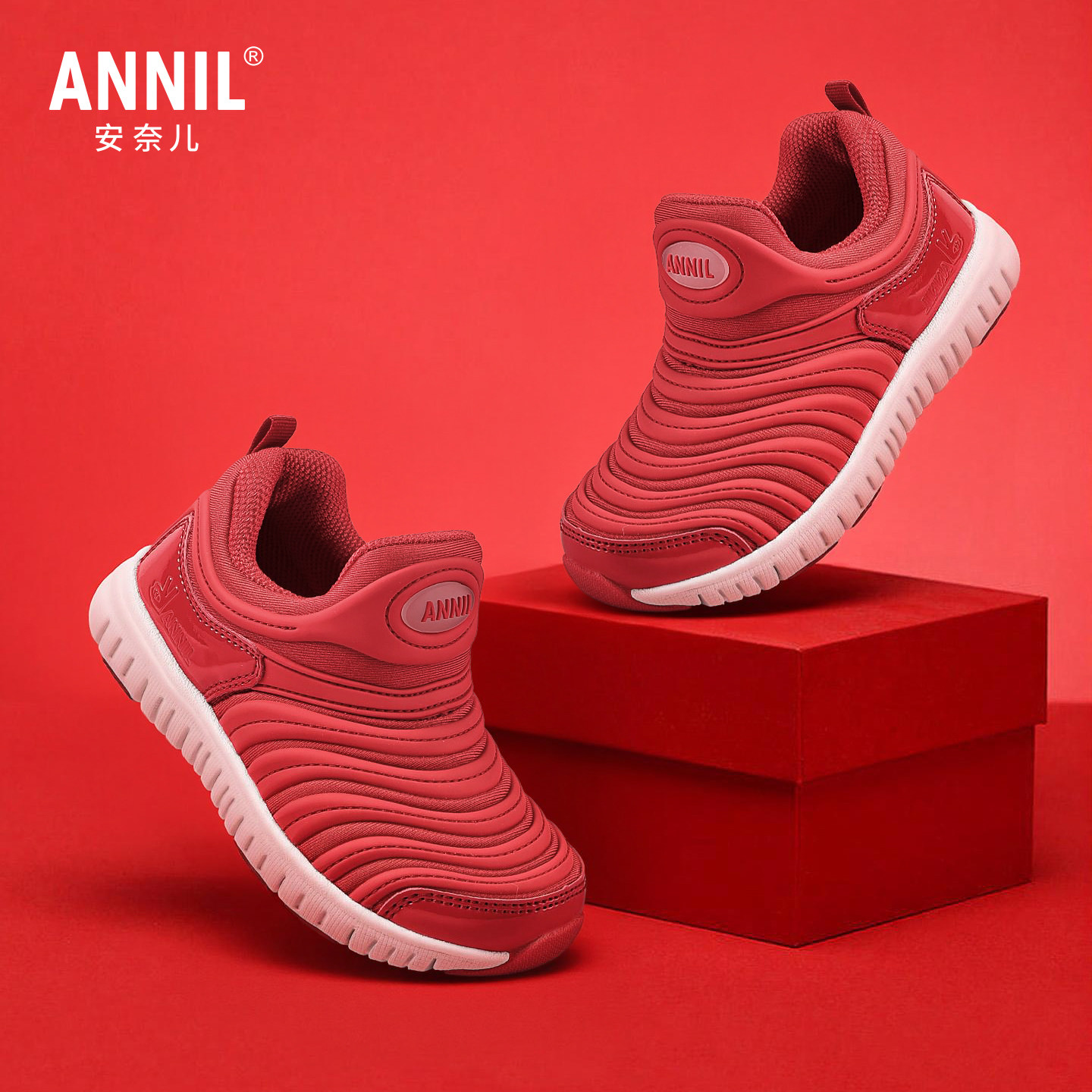 马年限定|安奈儿红色鞋子男童毛毛虫鞋一脚蹬儿童运动鞋女童春鞋