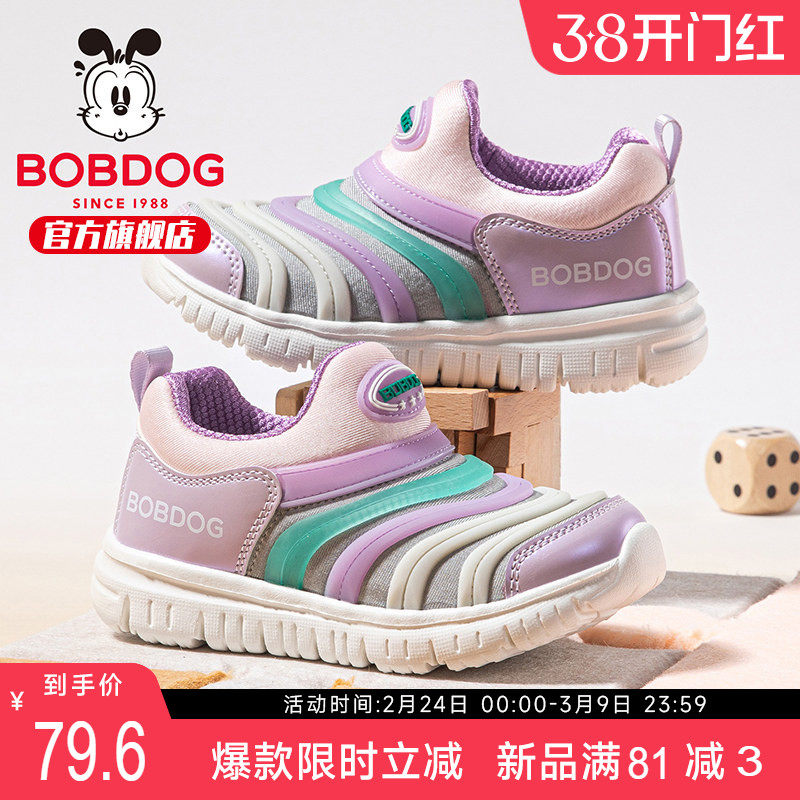 巴布豆童鞋女童一脚蹬毛毛虫鞋2026新款儿童宝宝鞋春季女宝运动鞋