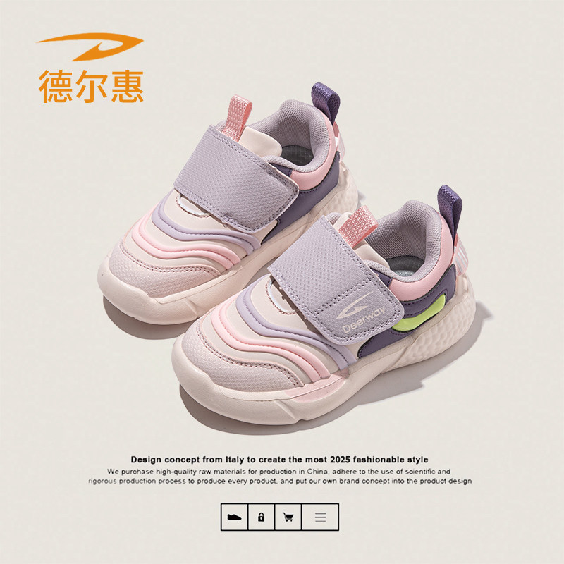 德尔惠春季新款毛毛虫软底童鞋中小童耐磨跑鞋男女童轻便运动鞋子