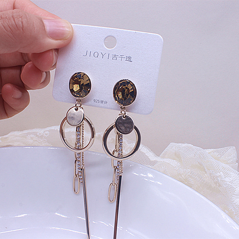 925银气质水晶耳环女长款精致耳坠百搭个性耳吊坠简约防过敏耳饰