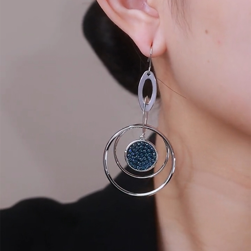 欧美风时尚圈圈流苏耳环女个性长款锆石几何圆圈耳坠气质夸张耳饰