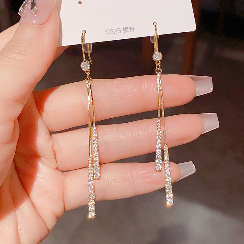韩式气质时尚简约镶钻长款流苏耳钩个性复古轻奢百搭显瘦精致耳坠
