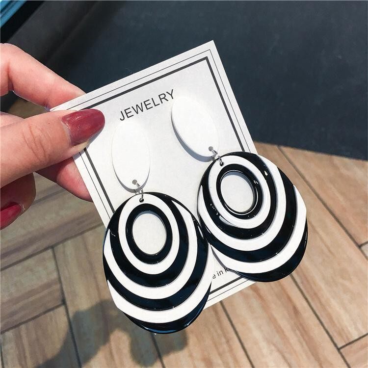 时尚夸张大耳环2024新款潮耳坠长款黑白耳饰欧美个性时尚网红气质