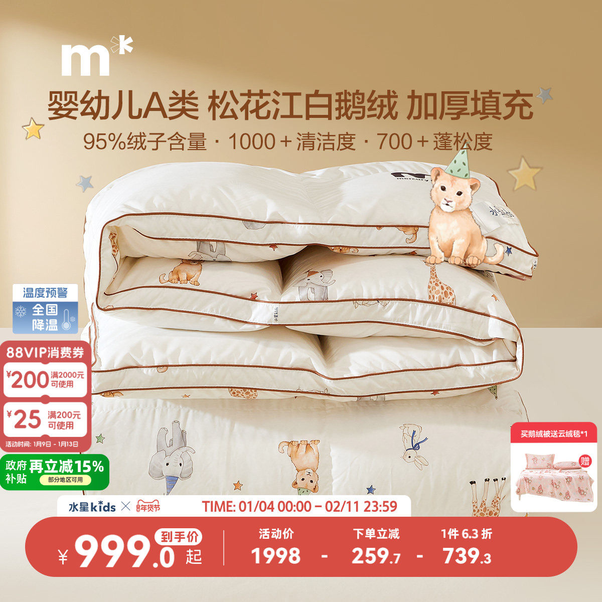 水星儿童95白鹅绒冬被子抑菌防螨加厚羽绒被A类可水洗白鸭绒被芯