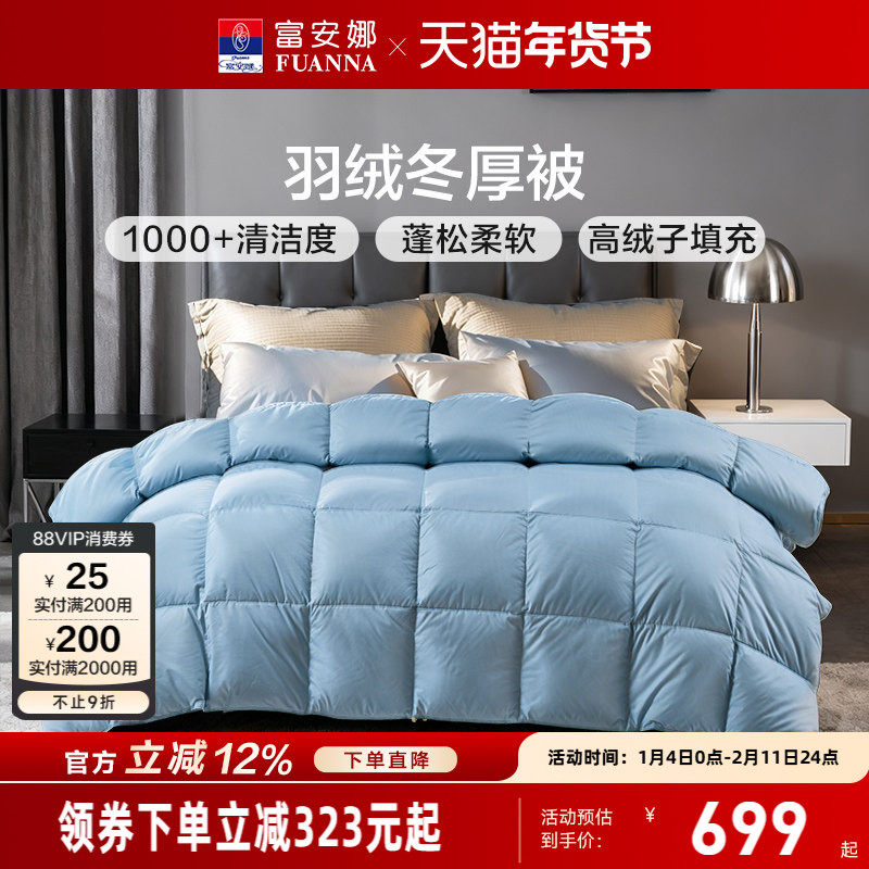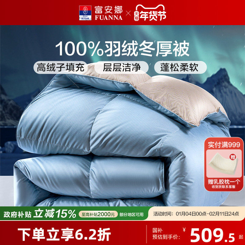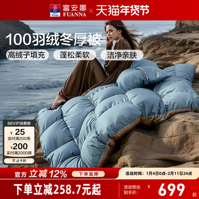 富安娜羽绒被冬厚被鸭绒四季保暖被子被芯春秋被冬季加厚保暖被褥