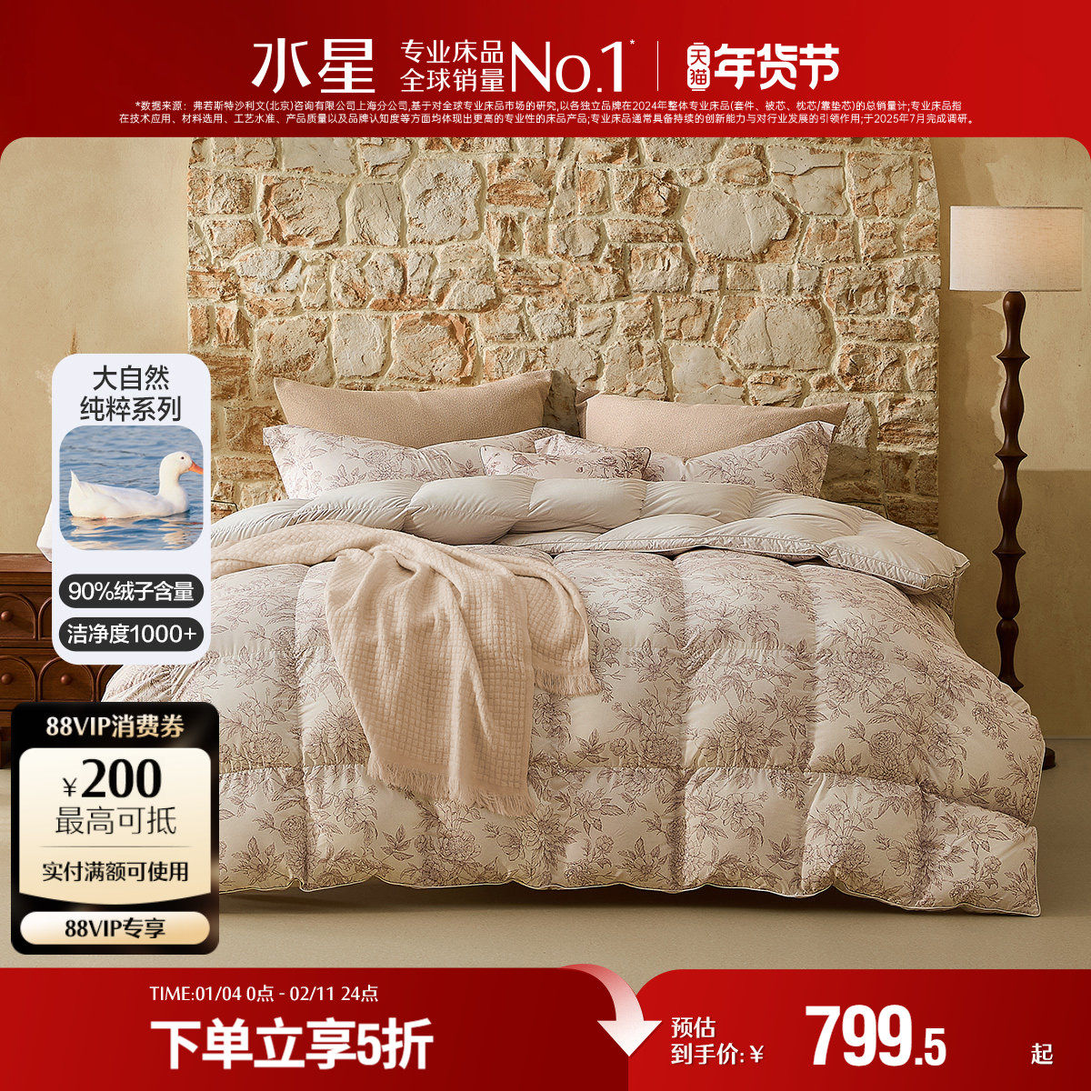 水星家纺90白鸭绒羽绒被抗菌防螨冬季加厚保暖被子国风被芯年货