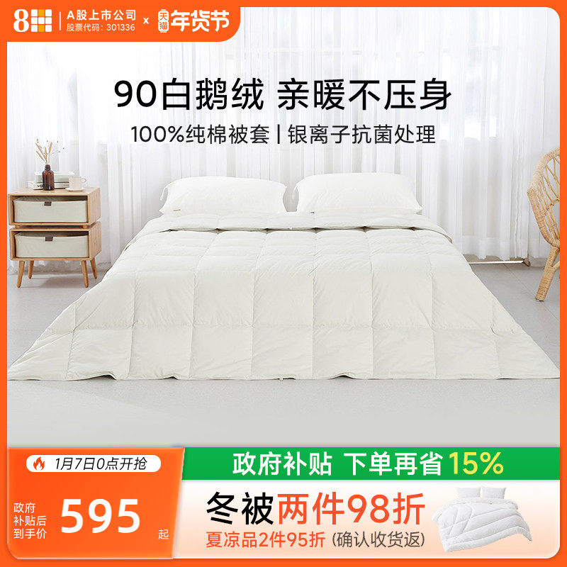 【自营】冬季90%白鸭绒被芯酒店双人保暖羽绒被A类抑菌面料冬被子