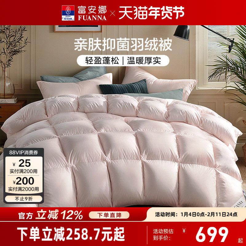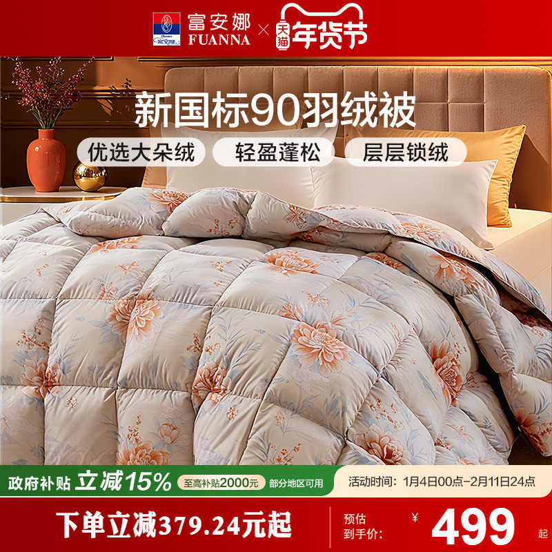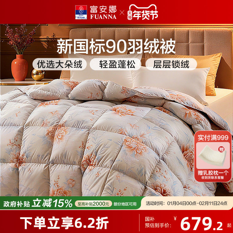 富安娜被子羽绒被四季被冬被加厚双人被褥春秋被芯冬季保暖鸭绒被