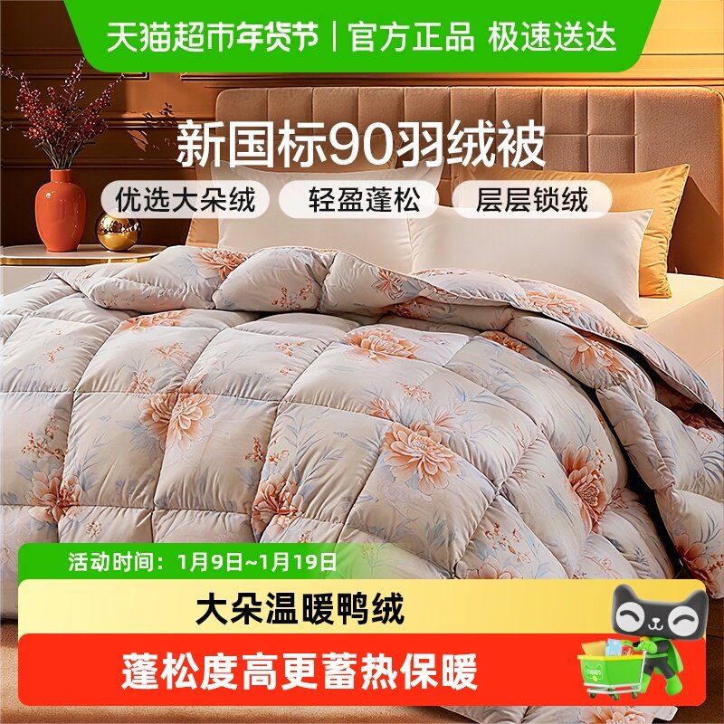 恒源祥家纺90鸭绒被保暖冬被羽绒被冬季被子加厚被芯单双人春秋被